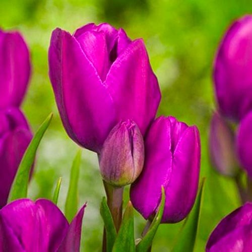 Тюльпан багатоквітковий Пурпл Букет - ефектний яскраво-бузковий сорт, що утворює на одному квітконосі до 6 досить великих келихів, які зацвітають попарно або по черзі. Належить до пізніх, зацвітає у квітні-травні залежно від термінів приходу весни. Кілька цибулин у груповій посадці утворюють розкішну клумбу однотипних рослин зі стійкими сортовими характеристиками, які успадковуються "дітками".