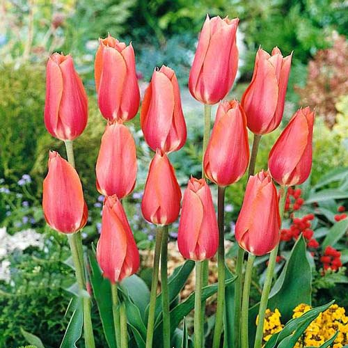 Тюльпан Перестройка (Tulips Perestroyka) – вишукана квітка з незвичайним забарвленням пелюстків. Основний тон – рожевий, по ньому подекуди розкидані тонкі світлі риски, а край прикрашений персиковою облямівкою. Схожості з живим полум’ям додають загострені верхівки пелюстків. Довжина бокалів перевищує 10 см, а висота квітконосів становить 60-70 см. Квітка відноситься до класу Прості пізні, розпускається у травні, пік декоративності триває декілька тижнів.