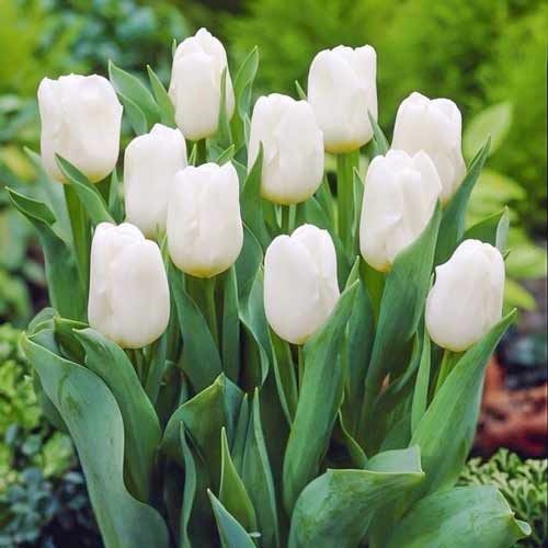 Тюльпан Triumph Antarctica - сорт, що цвіте наприкінці квітня. Добре поєднується з іншими сортами тюльпанів з більш темними квітками. Він прикрасить витонченими квітами будь-яке місце, де буде посаджений. Квітки зазвичай мають форму чашечки з 6 ніжних і бархатистих білих пелюсток з легкою жовтою ноткою. Цей витривалий і надійний у цвітінні тюльпан найкраще виглядає у великих групах одного сорту або в композиціях із сортами з жовтими, червоними або темно-бордовими квітками. Зрізані квіти довговічні і підходять для складання красивих букетів для прикраси нашої квартири.