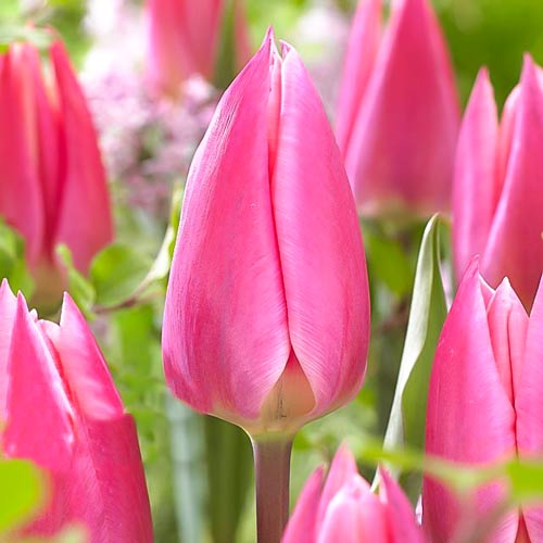 Тюльпан Тріумф Пінк Сюрпрайз – це популярний сорт цибулинних з келихоподібними квітками. Знизу пелюстки забарвлені в кремовий відтінок, що плавно переходить в яскраво-рожевий. Висота рослини – 40-60 см, діаметр квіточок – близько 5 см. Під час цвітіння келихи відмінно зберігають форму. Сорт відмінно виглядає у груповій посадці, використовується для оформлення садової клумби, парку, підходить для зрізки в букети. Замовте цибулини тюльпана Тріумф Пінк Сюрпрайз в інтернет-магазині «GradinaMax», і вже в квітні милуйтеся приємним рожевим сюрпризом у своєму саду.