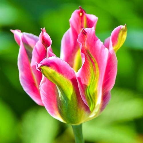 Тюльпан Viridiflora Virichic - унікальна краса з тонкою та елегантною формою бутонів. Пелюстки рожеві, і через кожну з них проходить зелена смуга. В результаті квіти справляють незабутнє враження, нагадуючи екзотичні види квітів або лілії. У міру дорослішання суцвіття змінює свій колір на більш темний. Сорт можна посадити, де ми шукаємо цікавий колірний акцент, як на рабатках, так і на клумбах, доріжках або газонах. Чудово поєднується з іншими сортами тюльпанів і нарцисів з білими або пастельними квітами. Квітки на довгих і міцних стеблах, що досягають до 40-50 см у висоту. Також вони підходять для зрізання і створення оригінальних композицій.