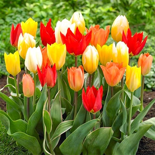 Тюльпани Тріумф, мікс - були виведені майже 100 років тому, традиційний вигляд квіток, безліч забарвлень пелюсток робить їх найпопулярнішою групою тюльпанів. Набір багатобарвних сортів з великими класичними квітками порадує кожного. Це винятково сильна група, стійка до несприятливих умов.