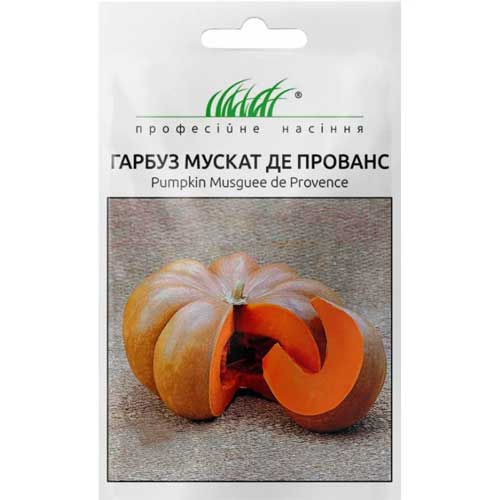 Гарбуз для пюре та каш Мускат де Прованс підійде для приготування не тільки звичайних страв, але і цукатів. Використовується сорт і в якості кормового. Один плід досягає маси до 5 кг. Сорт так полюбився для приготування ніжного пюре і добавки в солодкі каші завдяки м'якості та однорідності яскраво-жовтогарячої м'якоті. Ви не відрізните один помаранчевий відтінок від іншого. Купуйте насіння гарбуза для пюре та каш в інтернет-магазині «GradinaMax» – плоди довгий час пролежать на грядці навіть після повного дозрівання.