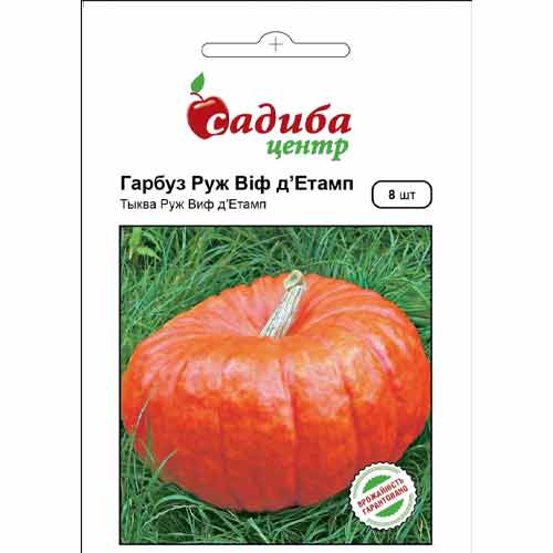 Гарбуз Руж Віф де Тамп – привабливий для городників, високоврожайний, середньопізній сорт. Культура ідеальна для вирощування в кліматі України та зимового зберігання. Плоди підходять для дієтичного меню й дитячого харчування. Рослина формує довгі пагони й великі (до 20 кг), округлі, трохи приплюснуті, сегментовані плоди. Вони зовні й всередині соковито-помаранчеві, з червонуватим відтінком через великий вміст каротину. М'якоть солодка, в сирому вигляді хрустка, після термічної обробки – кремової консистенції.