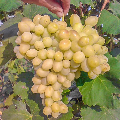 Виноград Адютант - нова гібридна форма винограду аматорської селекції А.В. Бурдака, сорт відноситься до дуже ранньостиглого. Період дозрівання 100 - 110 днів. Зазвичай доводиться на середину серпня. Великі грона вагою до 100 г, форма конічна, іноді з крилом. Ягода досить велика. За формою ягоди нагадують Аркадію. В середньому вага становить 10 - 15 г, при повному дозріванні ягоди стають жовтого кольору. Аромат ніжно-мускатний. На смак м'якоть - хрустка, шкірка легко з'їдається. Використовується в свіжому вигляді, підходить для приготування вин, соків, морсів, компотів. У нашому інтернет-магазині висока якість насіння і саджанців.
