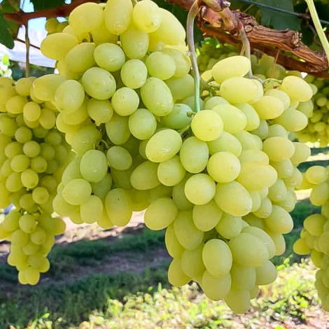 Форма грон - конічна, середній їхня вага - від 800 до 1200 грам. Трапляються і велетні, масою близько 1,5 кг. Ягоди великі, за формою овальні. Середня маса їх становить від 18 до 20 грамів. М'якоть помірної щільності, є мускатний післясмак.