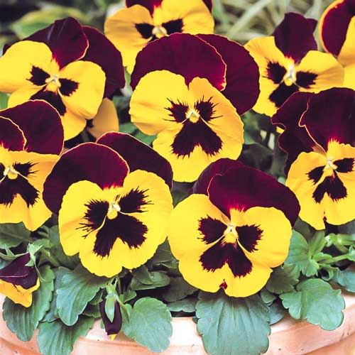 Віола Фенікс – цей сорт характеризується цікавим біколорним забарвленням квіток: верхні пелюстки бордові, а нижні жовті. Як і всі віоли, використовується в килимових і бордюрних насадженнях, в оздобленні балконів, у вазонах і кашпо.