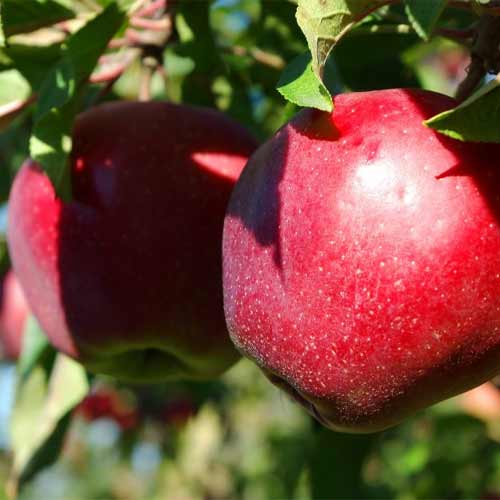Яблуня Макінтош - осінній сорт яблуні канадського походження. Сорт дуже популярний у Північній Америці та Новій Англії, де з його плодів готують чимало місцевих страв. Плоди досить великі, до 180 гр. Основне забарвлення плодів білувато-жовте або зелене, покривне забарвлення виражене на значній частині яблука у формі великих розмитих смуг темно-фіолетового кольору, які проходять по світлішому червоному фону. Форма плодів злегка плеската, слабоконічна у верхній частині та часточкова в нижній. Шкірочка на яблуках тонка, але досить міцна й еластична, гладенька, блискуча, з інтенсивним восковим нальотом сизуватого відтінку, легко відділяється від м'якоті. М'якоть біла, соковита, дуже ніжна, відмінного кисло-солодкого смаку, з насиченими цукерковими прянощами і дуже ароматна.