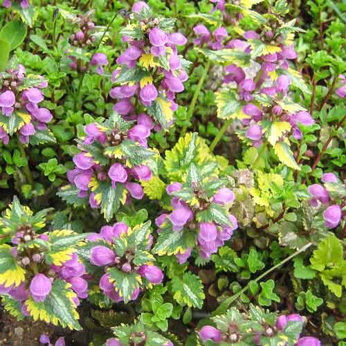 Глуха кропива Кенон Голд – багаторічний ґрунтопокрівник висотою до 30 см й діаметром близько 45 см. Пагони горизонтальні, густогіллясті. Листя дуже декоративне, формою вона нагадує серце із зубчастим краєм. Забарвлене в яскраво-зелений, а по краях суцільним кантом або плямами відтінене жовтим. Квітки формуються в пазухах листя. Вони багаточисельні, двугубі, лілово-бузкові. Цвітіння триває близько місяця, починається в кінці травня – червні. Купуйте саджанці глухої кропиви Кенон Голд та посадіть її на альпійській гірці, у поєднанні з іншими контрастними сортами або у вазони.