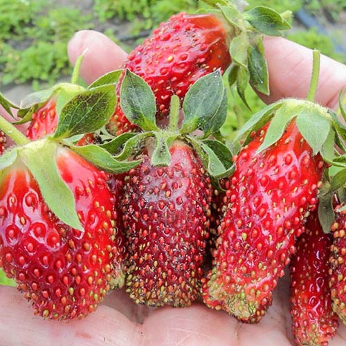 Земклуніка Мускатна Бірюльовська – ранній гібрид полуниці та суниці, який успадкував від обох «батьків» лише кращі якості – морозостійкість та хорошу опірність хворобам, високу врожайність. Плодоносіння розтягнуте, середня маса ягідок 8-10 г, хоча визрівають екземпляри й по 20 г. Забарвлення яскраво-червоне з бордовим відтінком, форма – подовжена. М'якоть солодка, з відчутним мускатним ароматом. Кущики средньорослі, формують міцні квітконоси, які утримують плоди й не дають їм гнити та бруднитися в землі. Культура випускає велику кількість вусів. Хочете не лише поласувати свіжими ягідками, але й прикрасити свою ділянку? Тоді замовляйте саджанці земклуніки Мускатна Бірюльовськая!